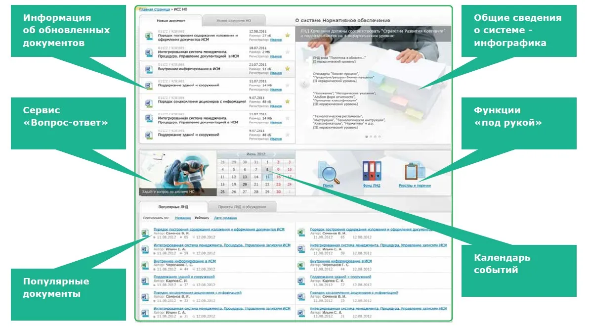 портал выступает витриной актуальных версий документов, но все бизнес-процессы протекают на стороне СЭД;