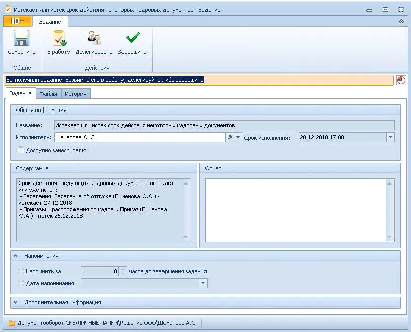 Система направит вам уведомление об истечении срока действия документа работнику кадровой службы.