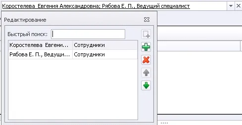 Контрол предназначен для выбора одного или нескольких значений из справочника сотрудников. Облегчает идентификацию сотрудников за счёт указания дополнительных атрибутов.