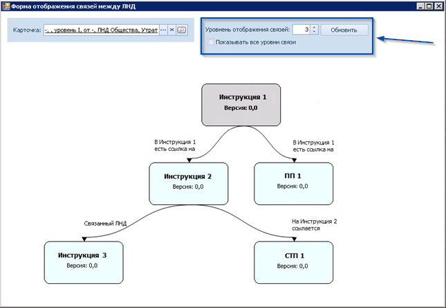 Пользователь может выбрать количество уровней отображения связей.